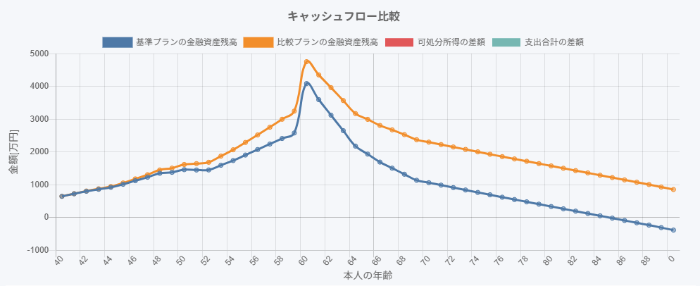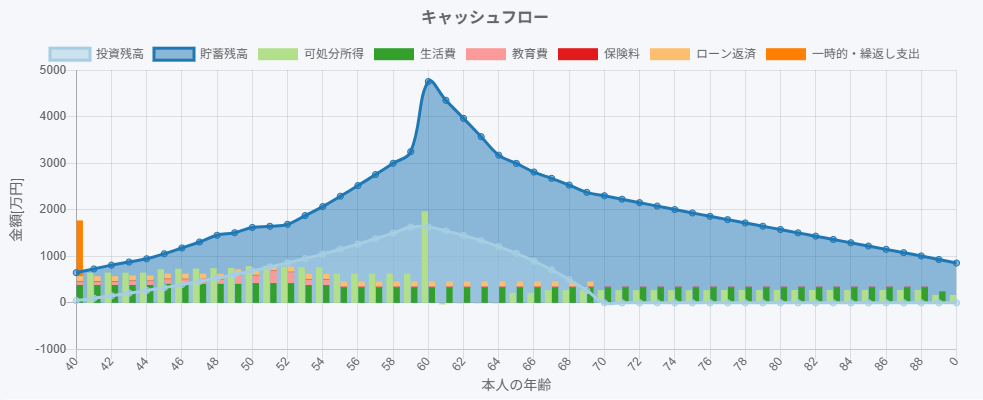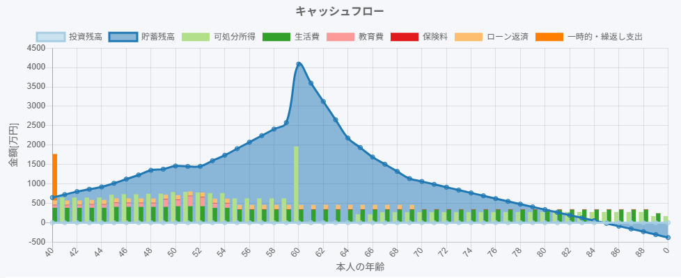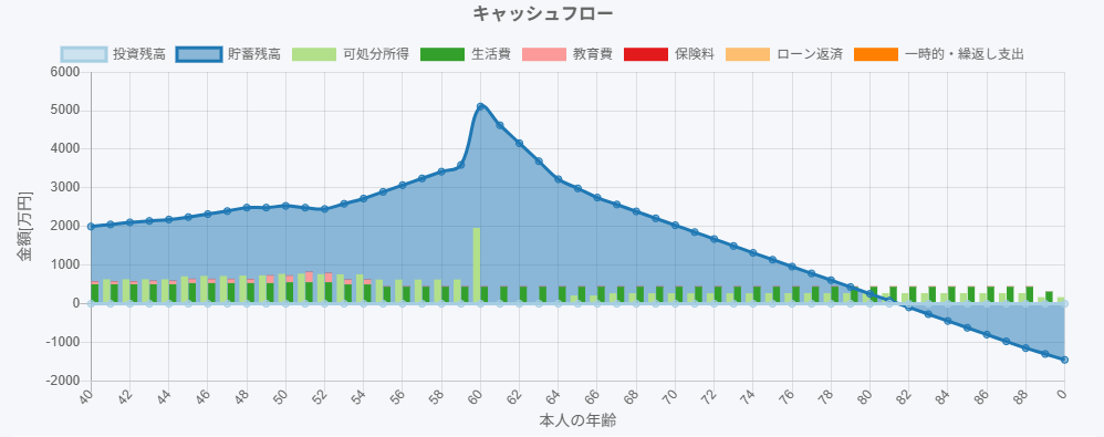 上記の基本情報を入力して、ライフプランシミュレーションを実行すると、以下の結果を得る。